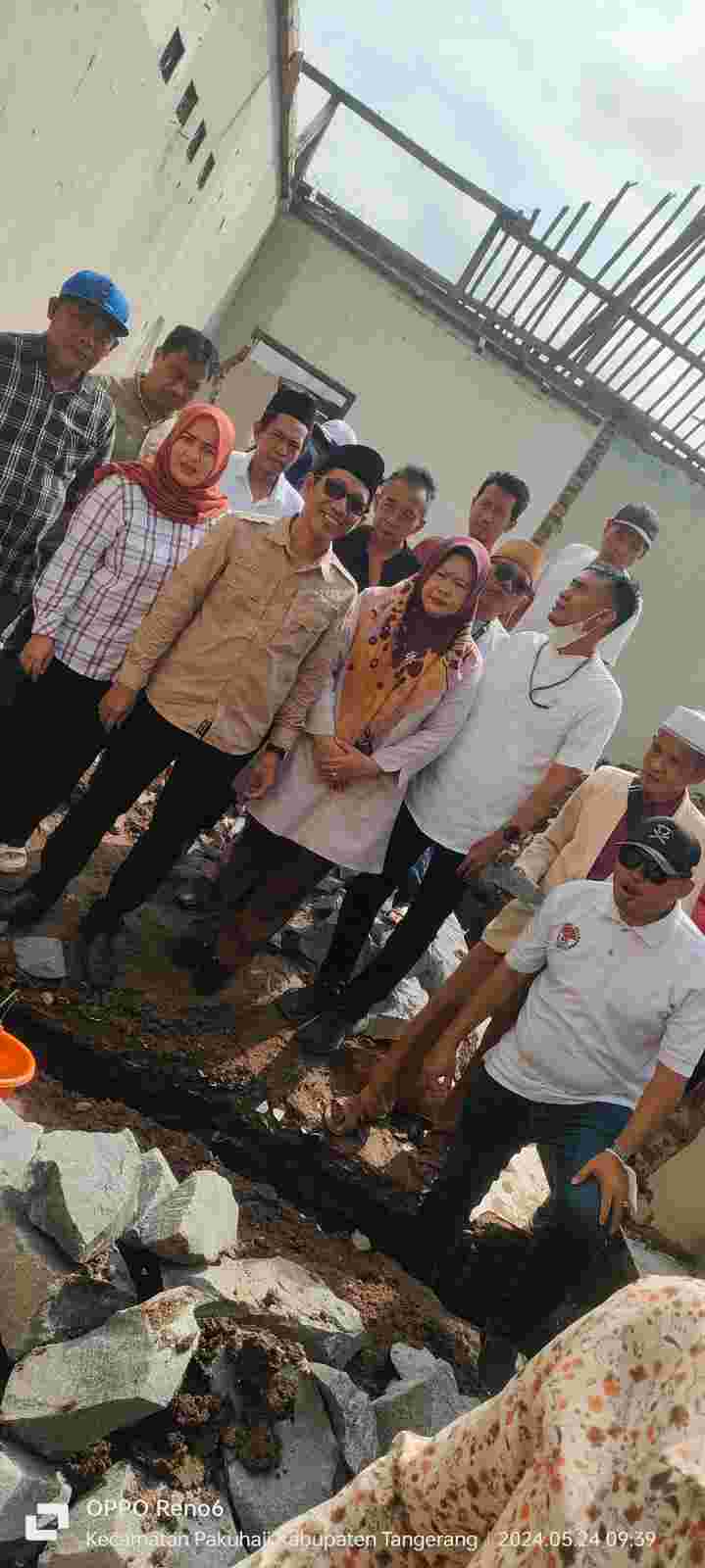Peletakan batu pertama dilakukan secara simbolis oleh orang nomor satu se-desa Kramat,Kec.Pakuhaji,Kab.Tangerang-Banten pada proyek pembangunan renovasi kantor desa yang lama pada jum'at(24/5/2024).